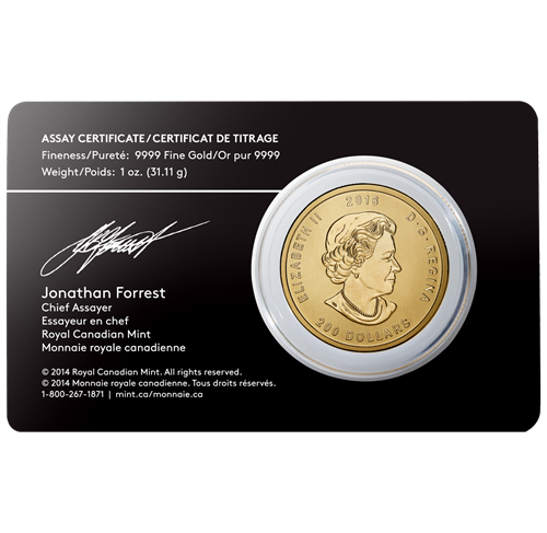- Signed by the RCM’s Chief Assayer, the assay certificate on the back of the card certifies the authenticity and purity of the coin.