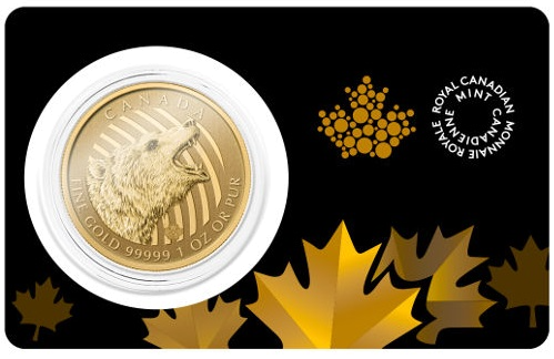 The Growling Grizzly is a new 1oz 99999 (5 9’s) pure gold bullion coin. It is the third coin in the “Call of the Wild” series which commenced with the Howling Wolf. These coins feature the laser engraved security mark introduced to the Gold Maple Leaf in 2013. In addition to its unmatched purity, this legal tender bullion coin holds a denomination of $200 (CAD), the highest of any 1oz bullion coin on the market. Each coin is packaged in premium credit card packaging with an embedded capsule.