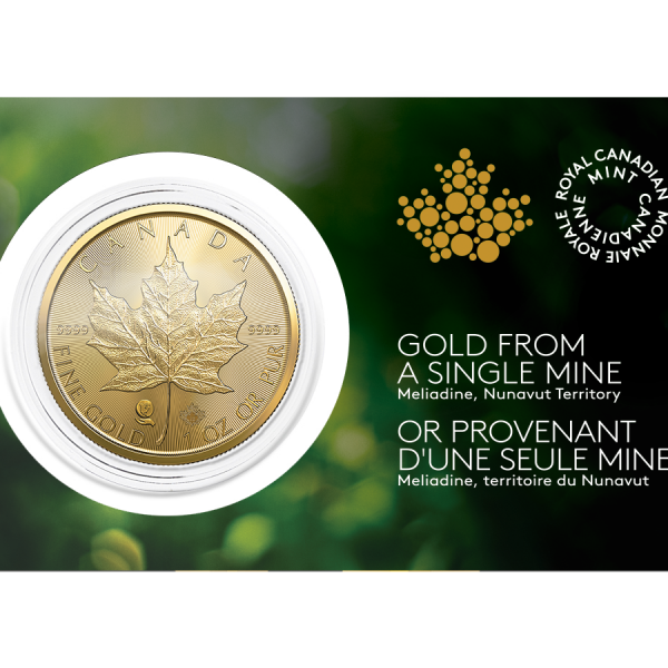 In a new directive to place more responsibility and transparency in metal sourcing, the Royal Canadian Mint is pleased to introduce the 1 oz Gold Maple Leaf with gold sourced entirely from a single Canadian mine – the Agnico Eagle’s Meliadine mine in Nunavut, Canada.