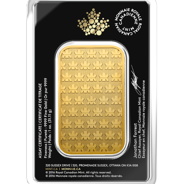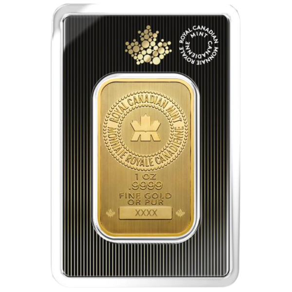 The 1 oz Royal Canadian Mint Gold Bar upholds the quality standards the Mint is renowned for. Drawing from their experience with the production of Gold Maple Leaf coins, the RCM gold bars bear crisp detailing and unique security features.