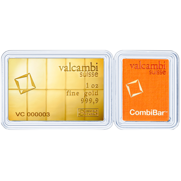 These 1 oz gold bars from Valcambi are a great combination of recognized, high-quality bullion, and unparallelled flexibility in distribution and selling. Individually sealed with respective assay certificate, each bar is easily divisible into single 1g units, allowing investors to sell the exact amount of silver they would prefer. As with all Valcambi products, these products feature precision machining and secure, tamper-proof packaging.